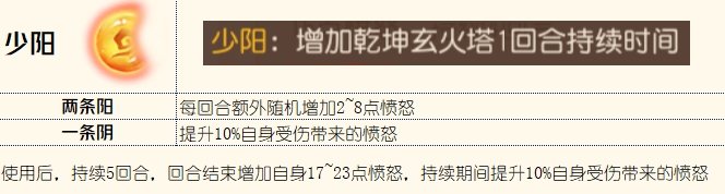 少阳获得的愤怒总的期望比较高,增加一回合的效果除了至少增加1回合至少15点基础效果,也增加一回合两仪带来的效果