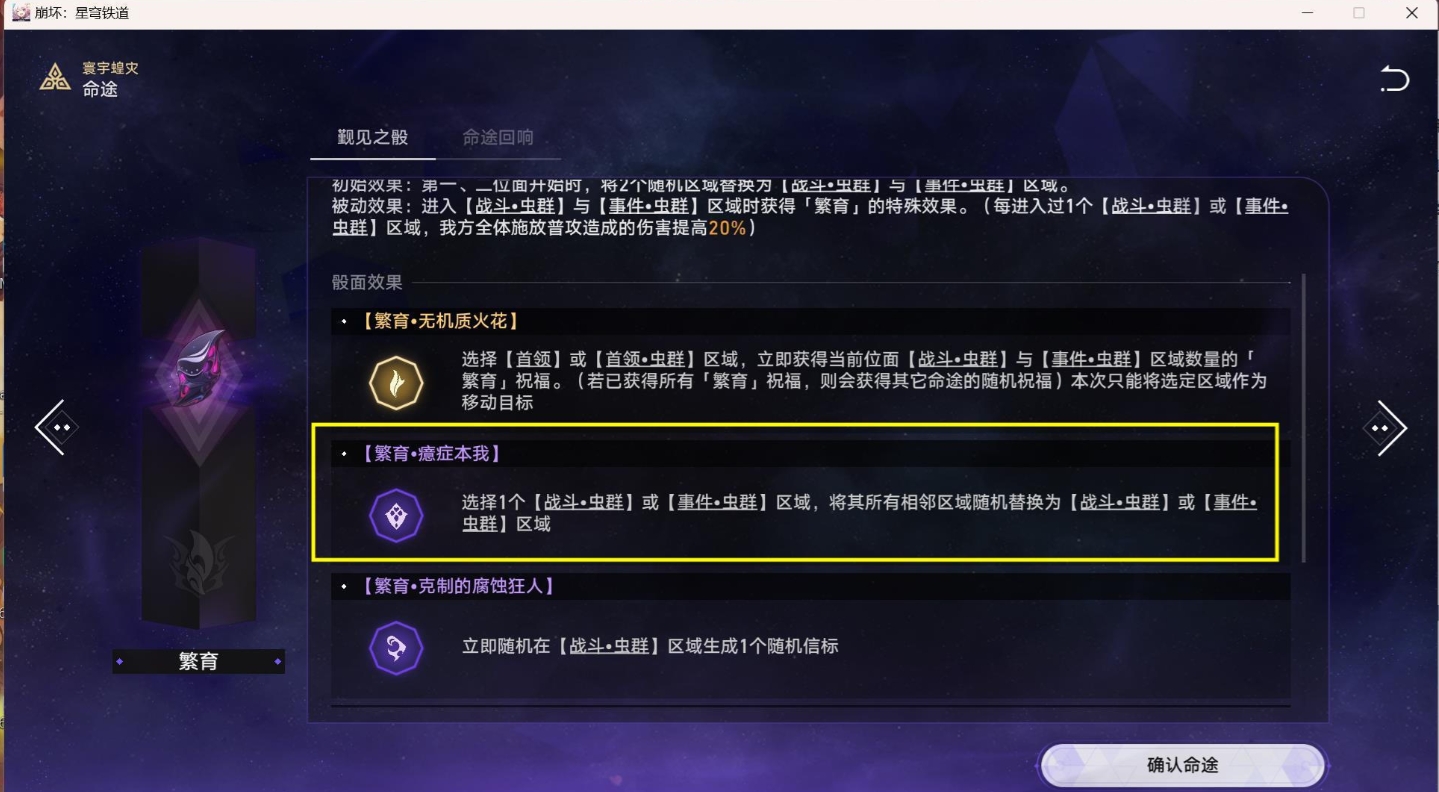 (1)主要利用下面「繁育」命途【繁育·癔症本我】这个【骰面效果】,可以生成大量【虫群区域】