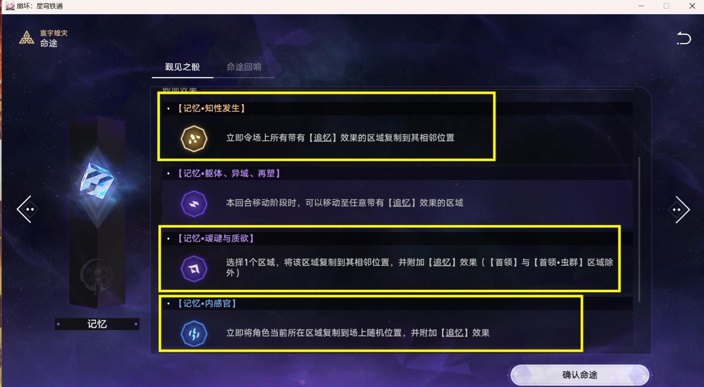(2)看情况利用下面「记忆」命途3种【骰面效果】一直连续复制【奖励区域】6次即可,这个成就只要运气不是特别差,基本都能一次拿到