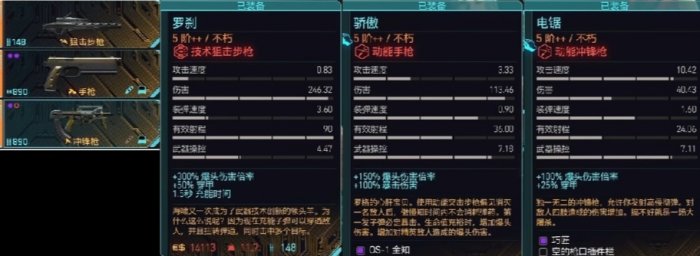 3、义体(主黑客瞪眼,副单分子线和枪械)