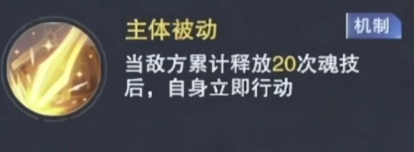 ①第一个机制为【主体被动】当敌方释放累计20次魂技以后,boss会立刻行动。这个机制也可以选择直接无视。