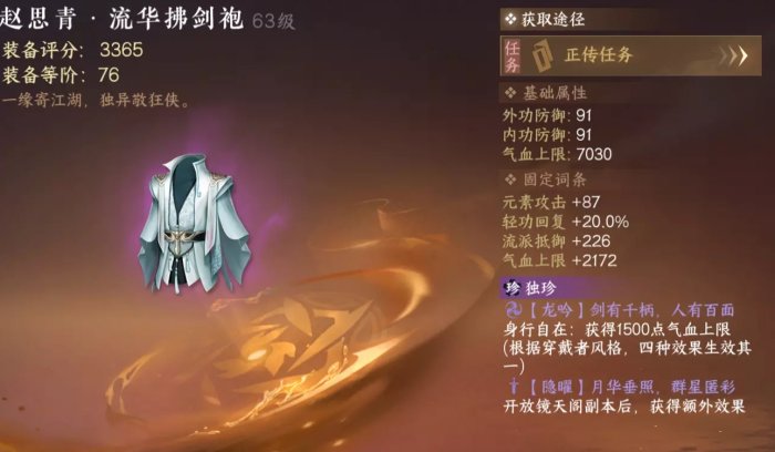 位置:谪仙岛(315.609)在山顶上,需要轻功飞上去,和叶凌云对话后,开启挑战击败即可获取第六件独珍装备【叶凌云··望帝怀雨带】,有一定难度,打不过可以组队。
