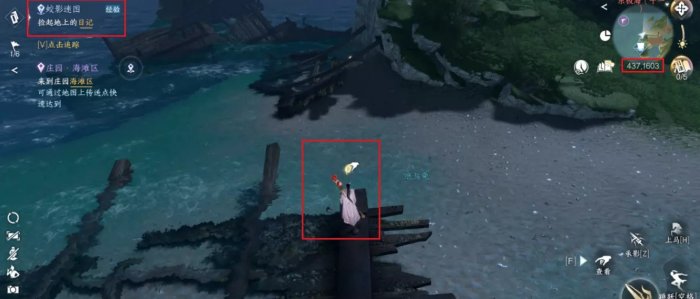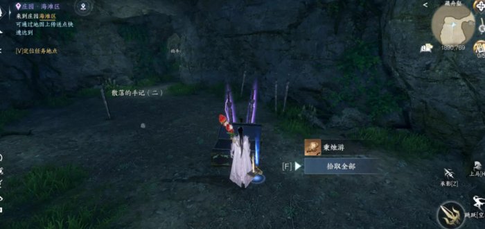 位置:幽冥雾海坐标(437.1603),触发探索任务,拾取任务道具打开日记本。