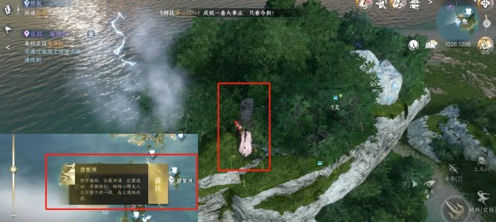 传送磐蟹洲更快石碑位置(1027.1285)石头最上边哦,查看石碑内容后开始下一个任务。