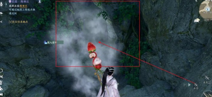 进入洞穴后跟随任务提示一直往前走,到最里边点击任务栏查看任务道具,打开大宝箱后,离开山洞。