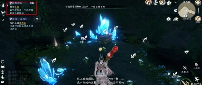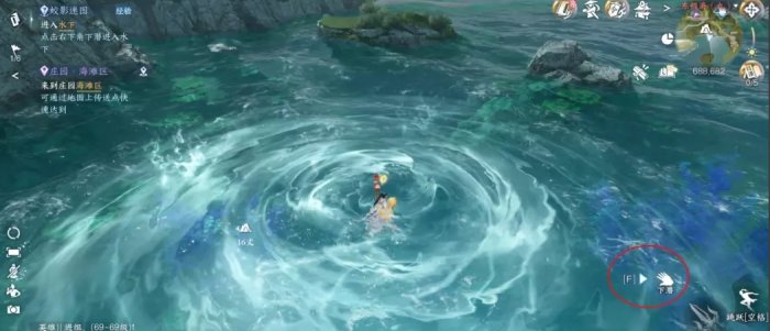 接着跟随任务指引,找到船夫对话,人后划船到任务目标,触发剧情,结束后来到坐标(688.682),下潜入海底,进入洞穴继续后续任务。