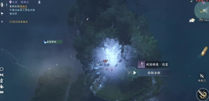 位置:坐标(1131.844)处打开大宝箱即可获得迅雷不及特质,雷电很密集记得佩戴迅雷不及特质,虽然打不死人,但很烦。