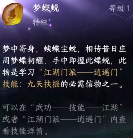 逍遥门信物,学习技能【九天扶摇】的任务道具。