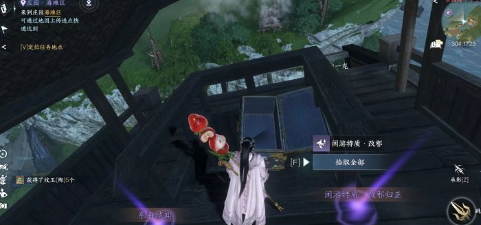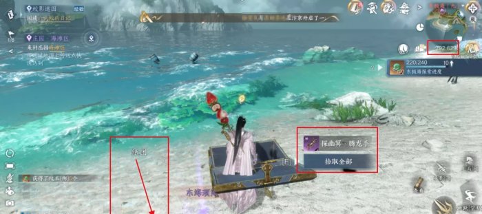 最后返回沙滩(792.629),打开宝箱获得第七件独珍装备【探幽冥·藤龙手】,最后拾取纸团完成任务。