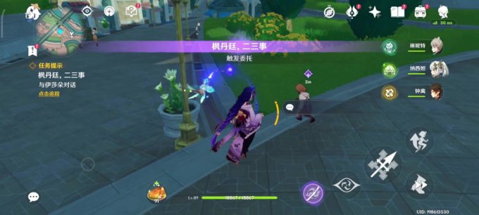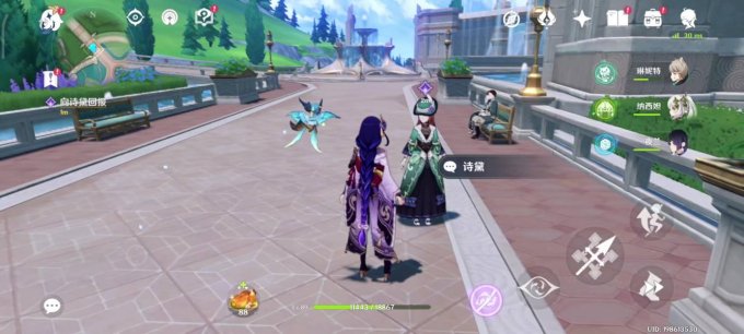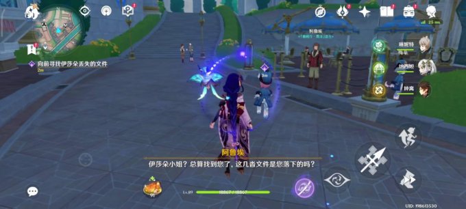 ◆跟随委托指引,来到枫丹廷广场,与草坪边的伊莎朵对话。