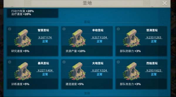 总的来说,圣坛作为一个前期的PVE项目,只有几十万的T2部队,且不会使用技能,基本属于送福利的项目,总体难度不高,除此之外其他的将领鉴于战斗效率较低故不再推荐了,不过也是可以使用的,不用一定追求上述将领,总之还是要根据自身情况选择合适的攻略方法!