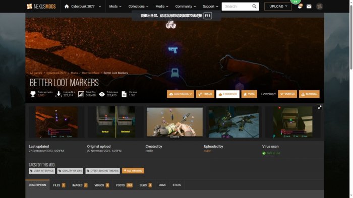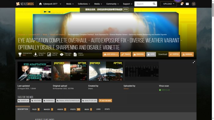 MOD来源均为NEXUSMODS(n网),以下1-8的MOD在2.0版本测试下都能正常使用