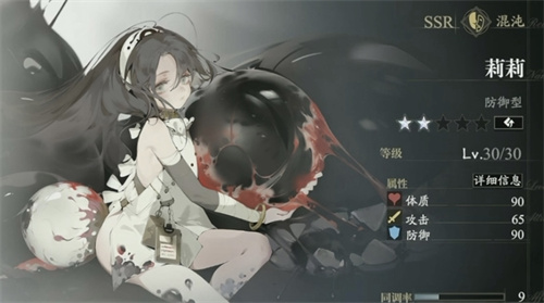 接下来是我们的莉莉,作为混沌系中最知名的SSR角色之一,玩家可以通过唤醒或特定角色活动唤醒。她是一个渴望成为母亲的少女,世界已经遗忘了她的名字,黑暗混沌之中,绽放的百合花只能仓促称之为"Lily"。
