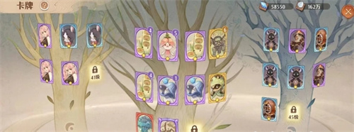 卡牌中的金卡是通过依赖个人运气来获得的,获得金卡并不容易,幸运的是,有很多活动提供了这样的机会。金卡的品种相对较少。相比之下,紫卡和蓝卡可以通过参加大猫货运和竞技场比赛来获得。值得一提的是,探索碎片合成的宝箱中也蕴藏着许多卡牌。