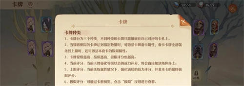 前期的阶段,可用卡牌数量较少,在各个板块上需要使用相应的卡牌。在银行有足够的光珀的情况下,可以购买商场中推出的高评价金卡或红卡。卡牌的使用说明中包含了对其等级和套牌加成的解释。如果能够组成一套完整的套牌,会最为理想。在活动中,也会为玩家提供选择金卡的机会。如果考虑使用魔导系列卡牌,建议优先选择野鹰或鹿灵这两张金卡。