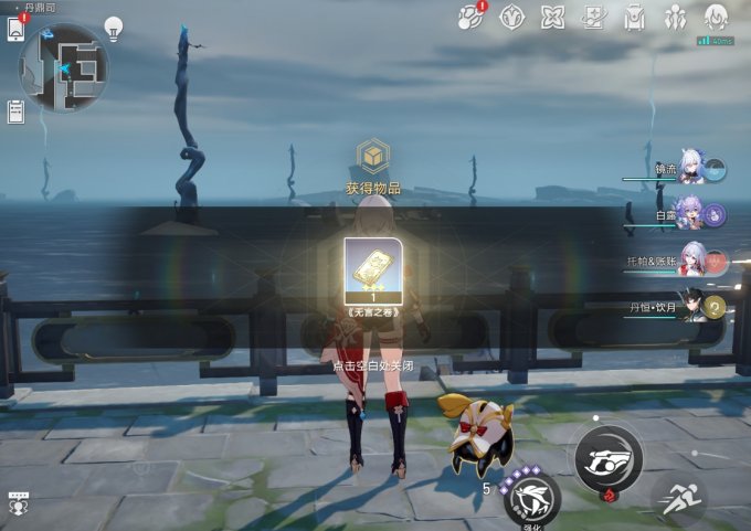 然后来到丹鼎司的这个位置,与小鱼对话,获得《无言之卷》
