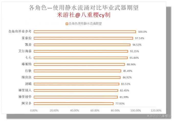 3)接下来,就按每个角色当前最好的武器作为100%期望参考值,然后对比芙芙专武差距,就可以判断出其适应性怎么样;