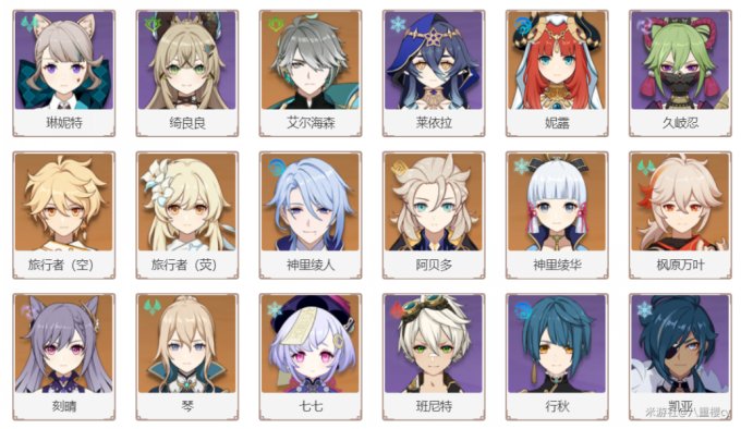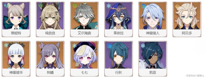 莱依拉、凯亚、艾尔海森、七七、琳妮特;