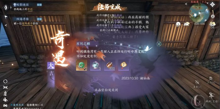 1.在东极海1779.799捡纸团触发奇遇,如果触发不了就多试几遍;