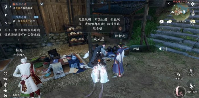 4.随后前往东极海1703.859与韩智友对话,然后在与庆点墨对话,对话结束后捡起地上的纸团;