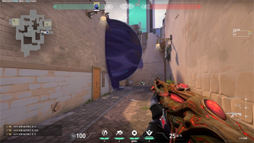 欧门能向指定的位置扔出一团暗紫色的烟雾——暗影弹。这个烟雾可穿过墙体,拦截对手的视野,令其范围缩小。是十分有效的干扰技艺。