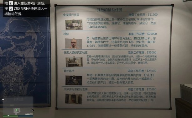 公寓抢劫一共有五个差事,除全福银行差事支持两名玩家以外,其余差事均得四名玩家才可开启