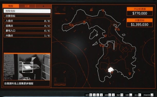 任务简述:潜入私人小岛,用尽一切办法,将小岛上豪宅内值钱的东西收入囊中
