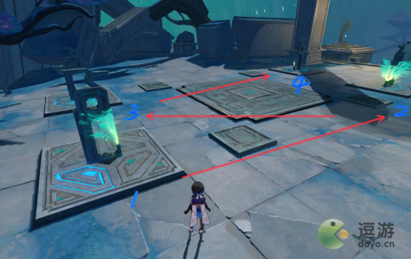 解密思路:根据脚下的方块亮起的个数来依次点亮,按1-4的顺序即可。