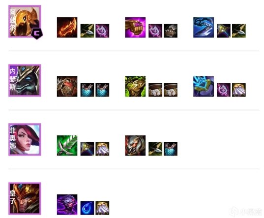 塔莉垭、纳亚菲利、娑娜、阿兹尔(沙皇)、菲奥娜(剑姬)、嘉文四世、内瑟斯、亚托克斯。