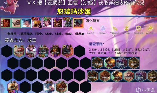 羁绊效果:4恕瑞玛、3德玛西亚、2司令、2术士、2主宰、2暗裔、2挑战者。