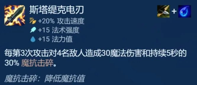 前期装备做一个电刃就能保障我们的前中期过渡,不但保证了前期的战力,且诺克萨斯魔法输出棋子较多,电刃降低敌方魔抗,进一步提升了阿兹尔、莫德凯撒、卡特琳娜、卡西奥佩娅的输出强度。