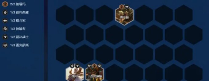 2-1拉4,2-5升5人口开出3诺克萨斯+2恕瑞玛+2斗+2神谕最优。
