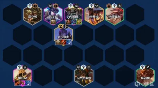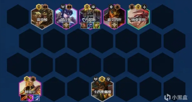 4-5左右拉8人口,继续搜牌提升质量,将阿兹尔和内瑟斯搜出两星,并找出卑尔维斯。如果只有一个转职就只能6恕瑞玛,双转职后续就上9开9恕瑞玛,另一个转移在没装备的情况下给瑟庄妮,有多的物理装或者法系装备就给亚托克斯或普朗克。