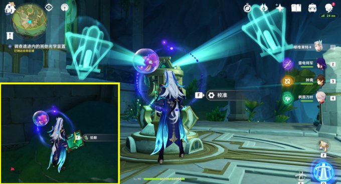 9、进门后击败魔物,取得【实验型晶体光路器件】,回去安装好进行【校准】。