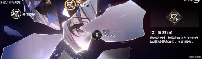 具体体现为极小的行动值差距,即布洛妮娅能紧跟主c后行动。