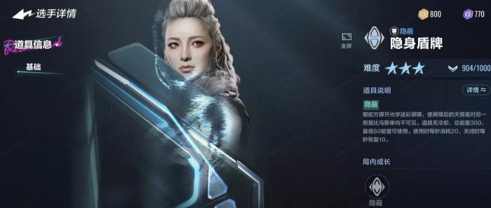 朝前方撑开光学迷彩屏障,使屏障后的天狼星对另一侧莫比乌斯单向不可见。道具无冷却,总能量300,最低60能量可使用。使用时每秒消耗20,关闭每秒恢复10