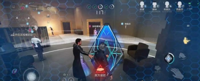 当天狼星在破译时,建议普通天赋装备“尊贵通道”,这样可以实时定位莫比乌斯的位置,以便在护盾展开时护盾方向正确。当莫比乌斯在面前时,一定时刻调整盾牌实时朝向莫比乌斯,不然容易被发现。要点:破译时可以选择一个角落,在莫比乌斯前来时展开盾牌并实时调整朝向,如下