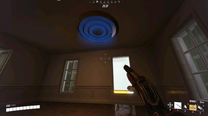 斜放跳板,按住w直至落地,准星对准正前方,落点是钩锁处。