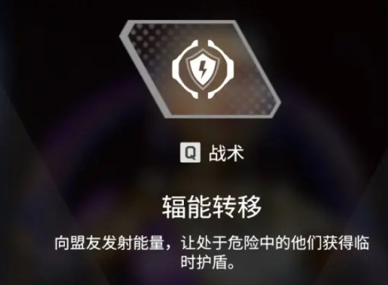 选定一个技能范围内的队友,点击技能键释放后同时回复队友与自己的护甲,护甲回复速度约为5s,队友回复上限为125,自己单独护甲的回复上限62.5,受击不影响护甲回复。护盾值会在持续20秒后在5秒内逐渐减少。