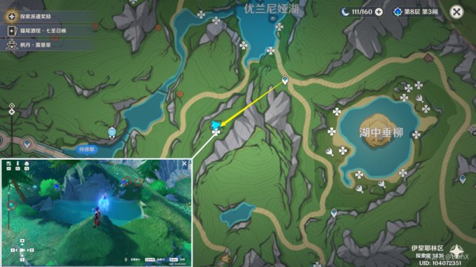 湖中垂柳的树下,此处的七个需要完成世界任务伊黎耶的野精灵后才会显示出来。