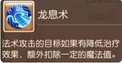 攻击有1层降疗效果的单位,炸蓝69点,攻击有2至3层降疗的单位,炸蓝138点,属于固定数值炸蓝,法连炸蓝无衰减,最高一回合对同一目标炸蓝276点,配合九头虫、龙宫玩家、万圣公主,可以打出每回合成百上千的炸蓝总量,神威西海龙王龙卷自带降疗,可实现对蓝量的直接打击