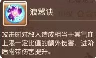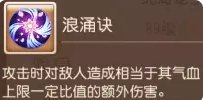 按敌人最大气血值造成一个固定伤害,此技能的效果不是非常明显,北海龙子不能进阶的时候,蜃境里结合浪涌决打出的伤害,不如西海龙王法连造成的综合伤害