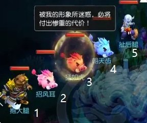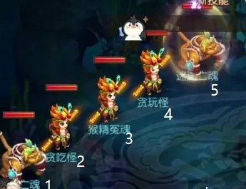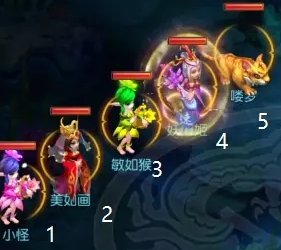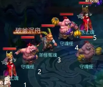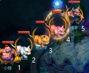 1号:狮驼,2号:龙宫,3号:主怪-方寸,4号:狮驼,5号:大唐